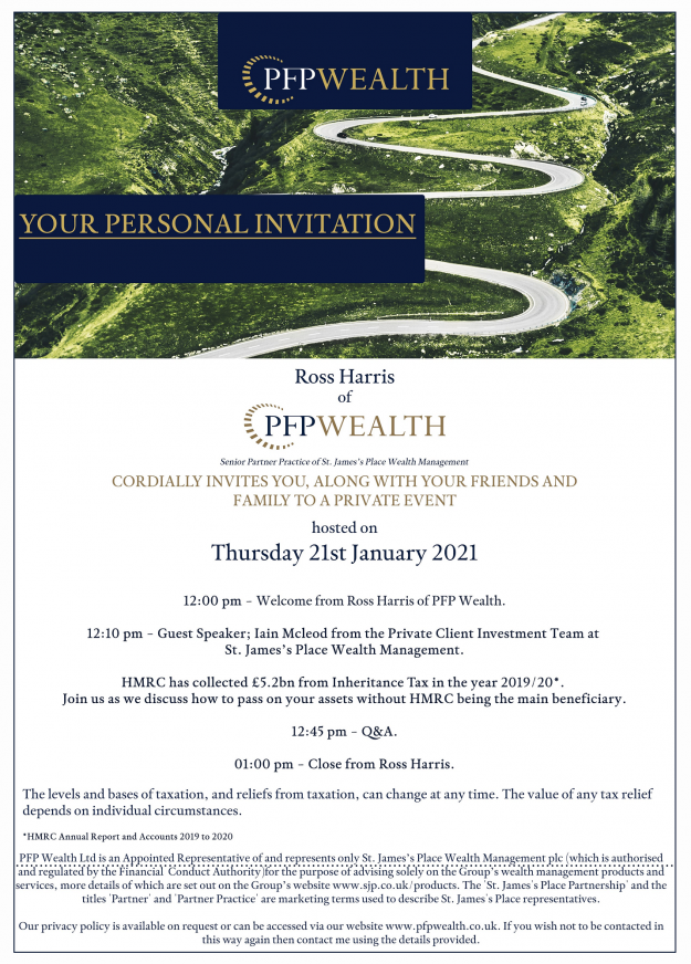 The event will be hosted by Ross Harris and a special guest speaker Iain Mcleod, Private Client Investment Consultant at St. James’s Place Wealth Management. Iain will be speaking to you about Estate Planning and how you can pass on your assets to your loved ones without HMRC being the main beneficiary. The presentation…