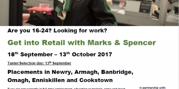 The 4 week programme offers participants the chance to gain work experience with a Marks & Spencer’s Store along with employability support.