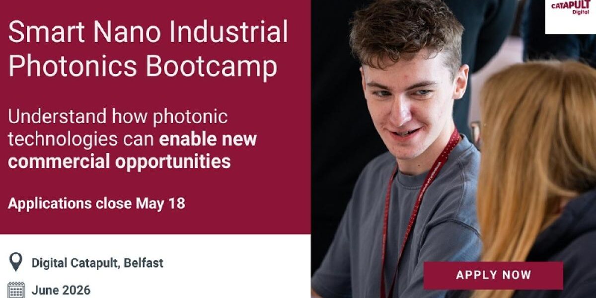 Digital Catapult, in partnership with the Smart Nano NI consortium, has opened applications for the Smart Nano Industrial Photonics Bootcamp. The programme will run in early June 2026.